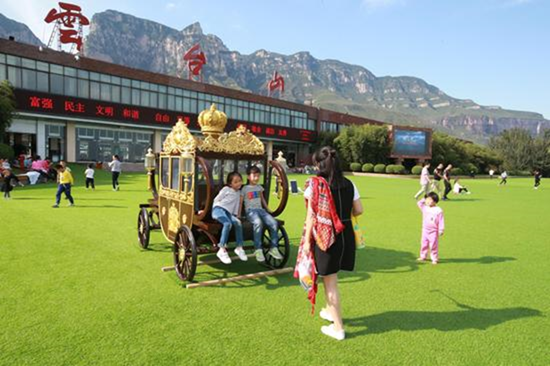 云台山景区对百家岩综合服务中心进行了改造提升,不仅在山门广场铺设了9000平方米的人工草坪,还增加了风车摆件、喷泉、卡通造型等,俨然变成了一个欢乐的梦幻乐园。